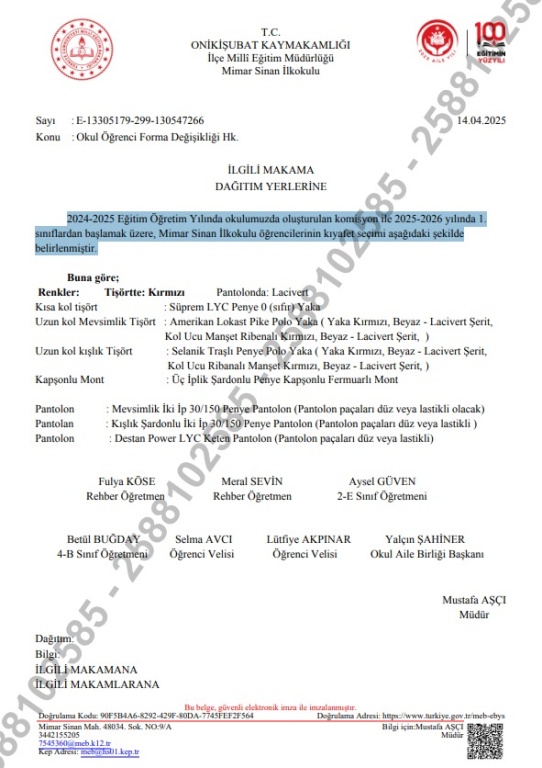 2025 - 2026 Eğitim Öğretim Yılında Okulumuz Öğrencilerinin Kullandığı Okul Formaları 1. Sınıflar ile Birlikte Haberimizin İçeriğinde Paylaştığız Görseller Doğrultusunda Değişmitir. Kıymetli Velilerimize Duyurulur.